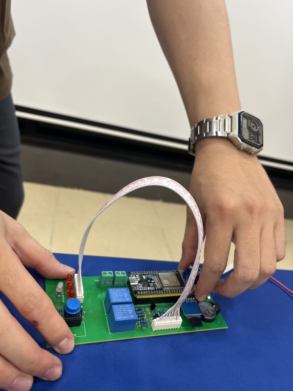 Một trong những sản phẩm tiêu biểu của lớp C2505E là hệ thống điều khiển đèn UV ứng dụng trong bệnh viện. Đây là bài toán mang tính thực tiễn cao, yêu cầu sinh viên kết hợp kiến thức điện tử, an toàn điện và tư duy hệ thống. Sản phẩm không chỉ đáp ứng chức năng bật tắt và điều khiển chính xác, mà còn hướng đến yếu tố an toàn cho người sử dụng – tiêu chí quan trọng trong môi trường y tế.