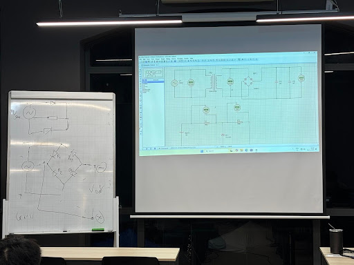 Ngay từ những phút đầu tiên, lớp học đã tràn đầy năng lượng. Khi giảng viên giới thiệu về các loại diode và chức năng của chúng, ánh mắt của sinh viên như bừng sáng. Không chỉ dừng lại ở lý thuyết, các bạn nhanh chóng bắt tay vào vẽ mạch chỉnh lưu, tự tay mô phỏng và quan sát cách mà diode hoạt động trong thực tế. Từng sơ đồ, từng phép tính tưởng chừng khô khan lại trở nên sinh động khi được gắn liền với hình ảnh, âm thanh và kết quả hiển thị trực quan trên mạch.