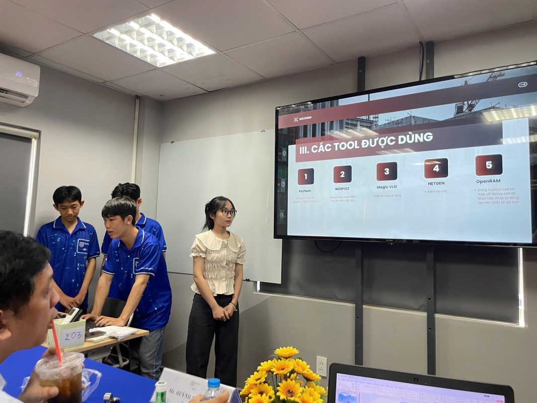 Nhóm thực hiện gồm Trần Thông Triết, Nguyễn Trung Tín, Nguyền Hồng Ngọc và Nguyễn An Phú. Dự án không chỉ dừng lại ở lý thuyết mà được triển khai theo quy trình thiết kế vi mạch thực tế, từ mức transistor cho đến tạo macro có thể tích hợp vào hệ thống lớn hơn.