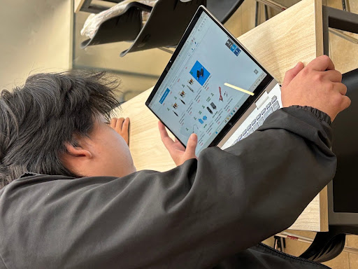 Trong quá trình thực hiện, các thành viên chủ động phân chia công việc tùy theo thế mạnh. Một số bạn tập trung xem xét lại bản vẽ kỹ thuật, trong khi những bạn khác tìm hiểu thông số, lựa chọn và chuẩn bị linh kiện phù hợp. Sự phối hợp nhịp nhàng giữa các thành viên giúp cả nhóm hoàn thành các bước chuẩn bị một cách hiệu quả, đồng thời tạo môi trường học tập năng động và chủ động.