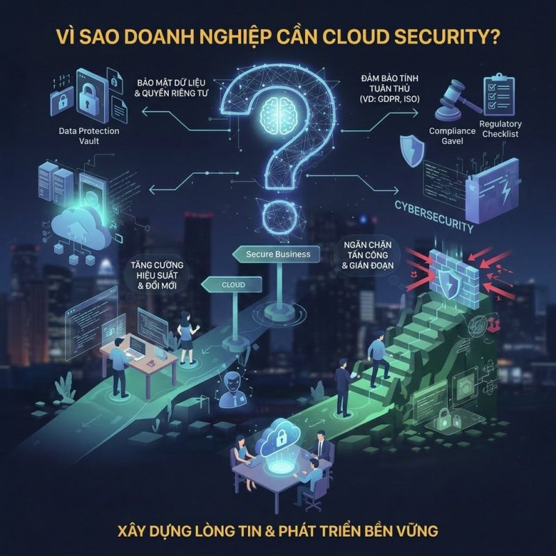 Tuy nhiên, song song với lợi ích là những rủi ro bảo mật ngày càng phức tạp. Đây chính là lý do Cloud Security trở thành yếu tố sống còn trong chiến lược phát triển công nghệ.