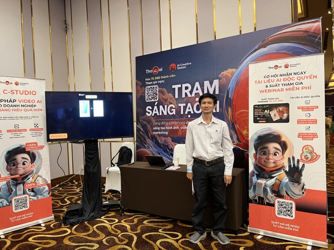 Bên cạnh các phiên hội thảo, khu “Trạm Sáng Tạo AI – AI Creative Station” tạo điểm nhấn ấn tượng với nhiều hoạt động tương tác trực tiếp. Khách tham quan có cơ hội trải nghiệm các nền tảng công nghệ mới như AI Video Marketing C-Studio, công cụ giúp doanh nghiệp tạo ra video nhanh chóng và chuyên nghiệp hơn.